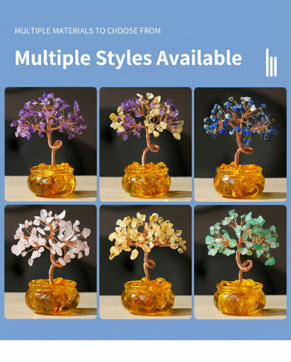 The Glass Cornucopia Crystal Tree is an exquisite home decoration piece, featuring a glass cornucopia within which a crystal tree is “growing,” crafted from irregular crystal fragments. Its branches and leaves are lush and sparkling under sunlight, symbolizing a continuous flow of wealth and good fortune. It is perfect for displaying at home or in a shop, enhancing both financial luck and aesthetic appeal.